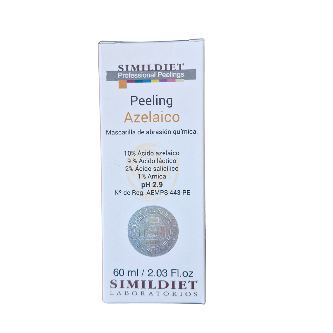 Simildiet Azelainsäure-Peeling 10 % ist ein professionelles chemisches Präparat zur oberflächlichen Hautexfoliation, entwickelt für problematische, fettige und zu Akne neigende Haut. Dank sorgfältig ausgewählter Wirkstoffe – Azelainsäure, Salicylsäure und Milchsäure – wirkt es stark entzündungshemmend, antibakteriell, seboregulierend und komedolytisch. Der enthaltene Arnika-Extrakt beruhigt zusätzlich die Haut und verstärkt die lindernde Wirkung. Das Peeling eignet sich sowohl für Jugendliche als auch für erwachsene Patienten mit Akne, erweiterten Poren, Komedonen und seborrhoischer Dermatitis.
